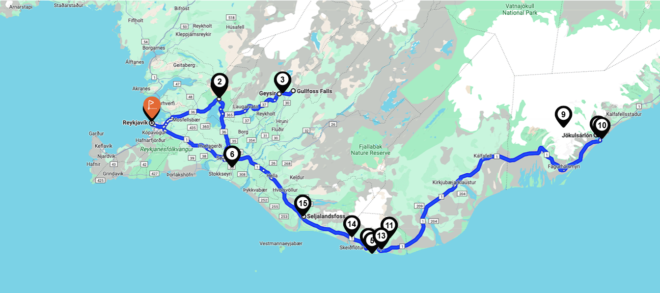 Op de laatste dag reis je terug langs de Zuidkust, waarbij je nog een aantal iconische locaties bezoekt.